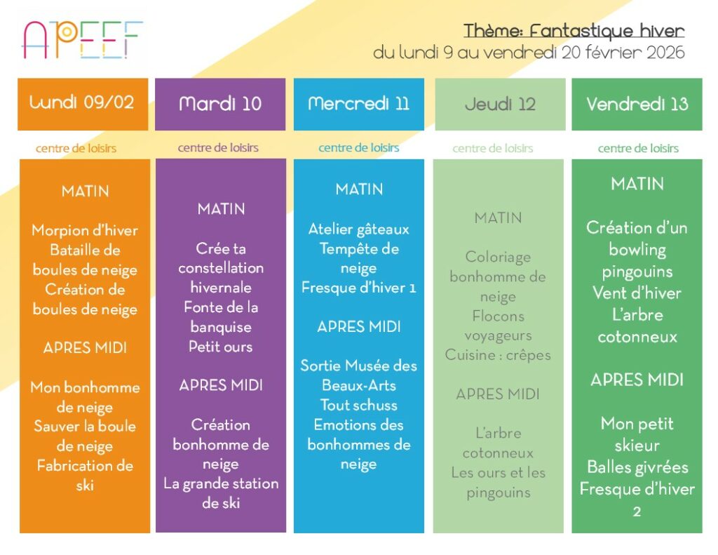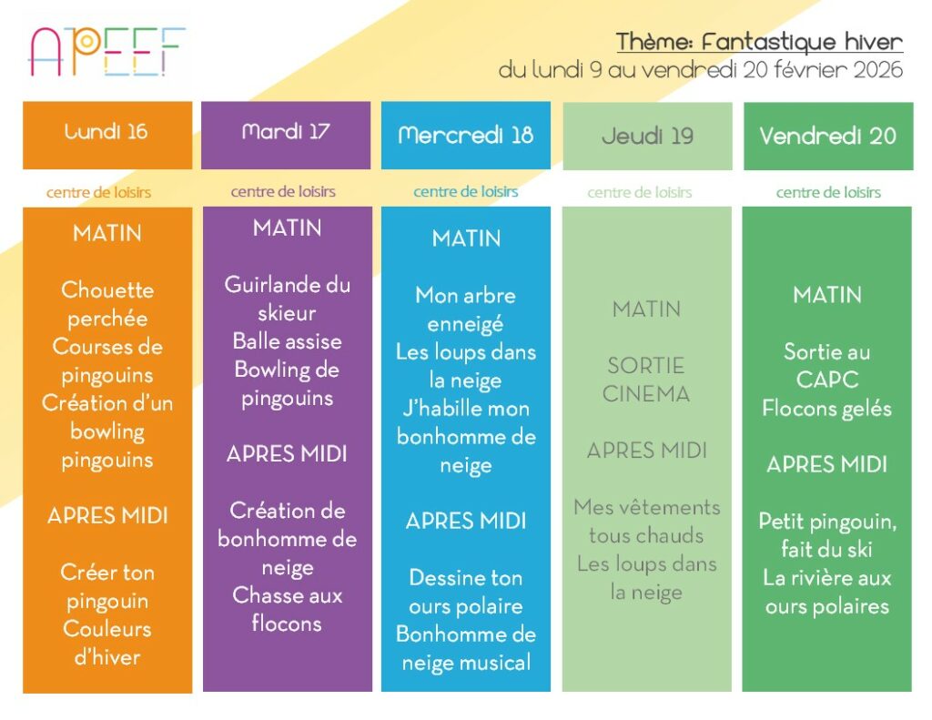 Directeur du centre de loisirs : Alexandre POLONI– alexandre.poloni@apeef.com / 07 83 07 77 46