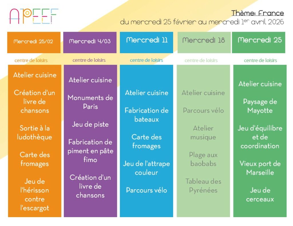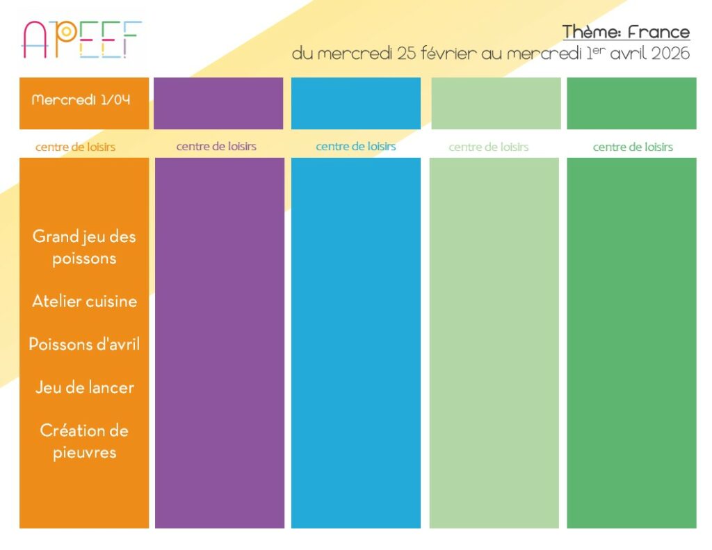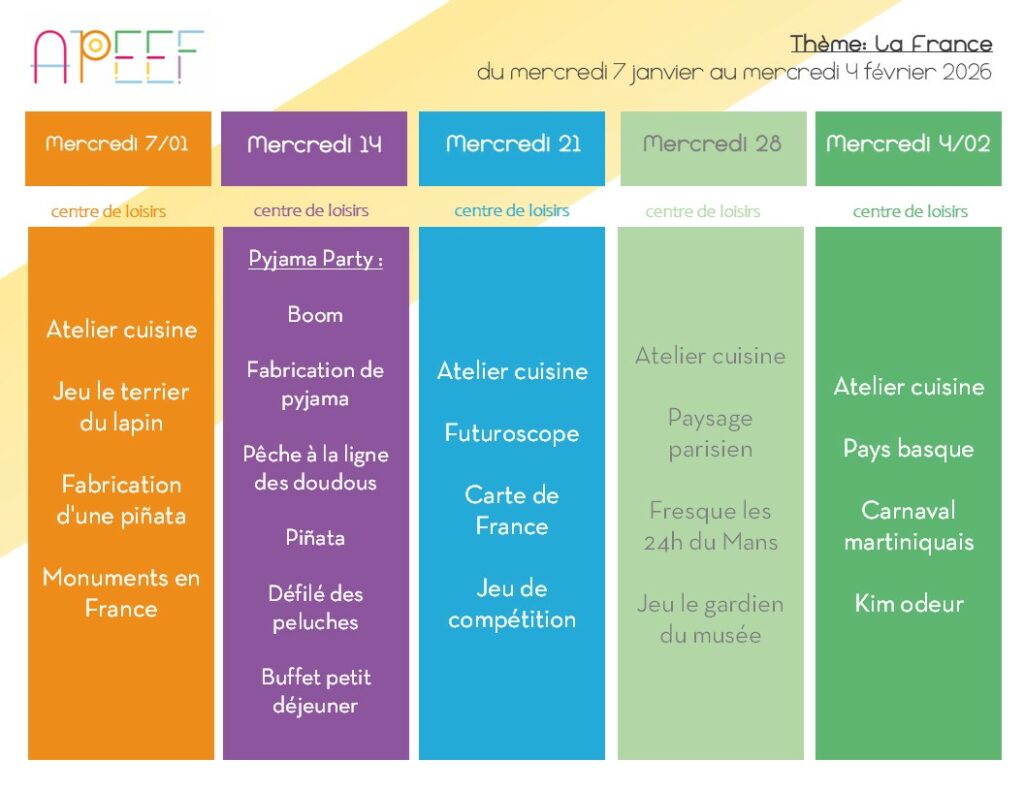 Directrice du centre de loisirs : Fanny RATOUIT – fanny.ratouit@apeef.com / 07 83 03 81 42