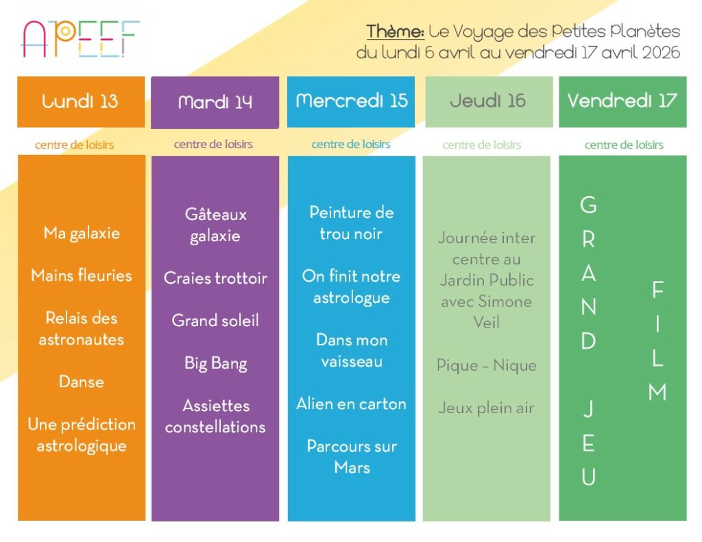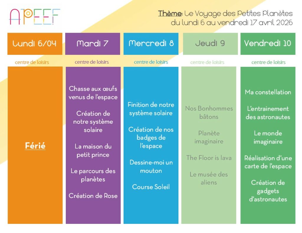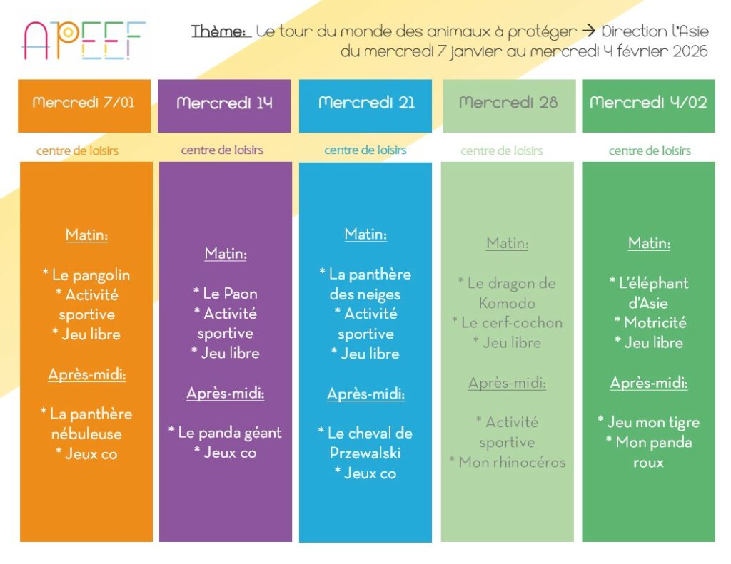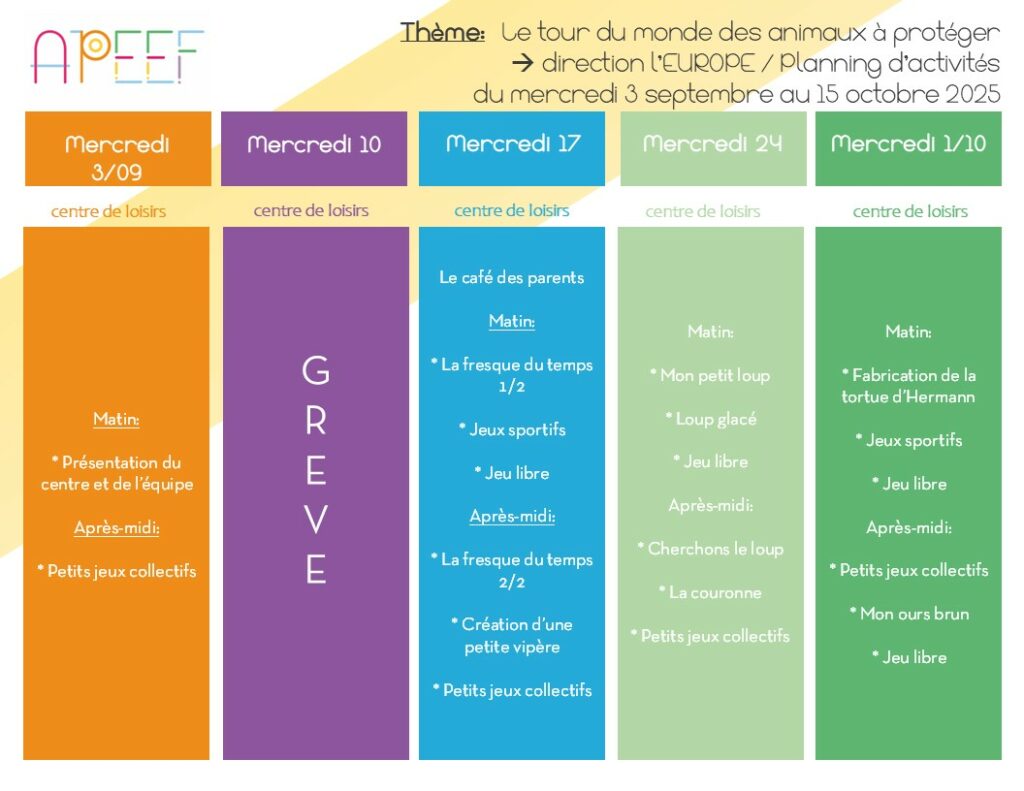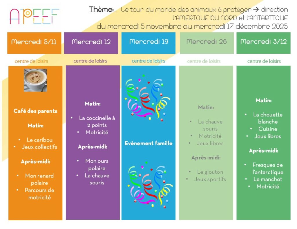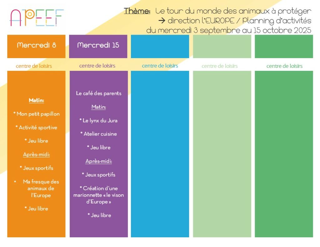 Directrice du centre de loisirs : Charlène BERTHAUD– charlene.berthaud@apeef.com / 07 83 53 24 86